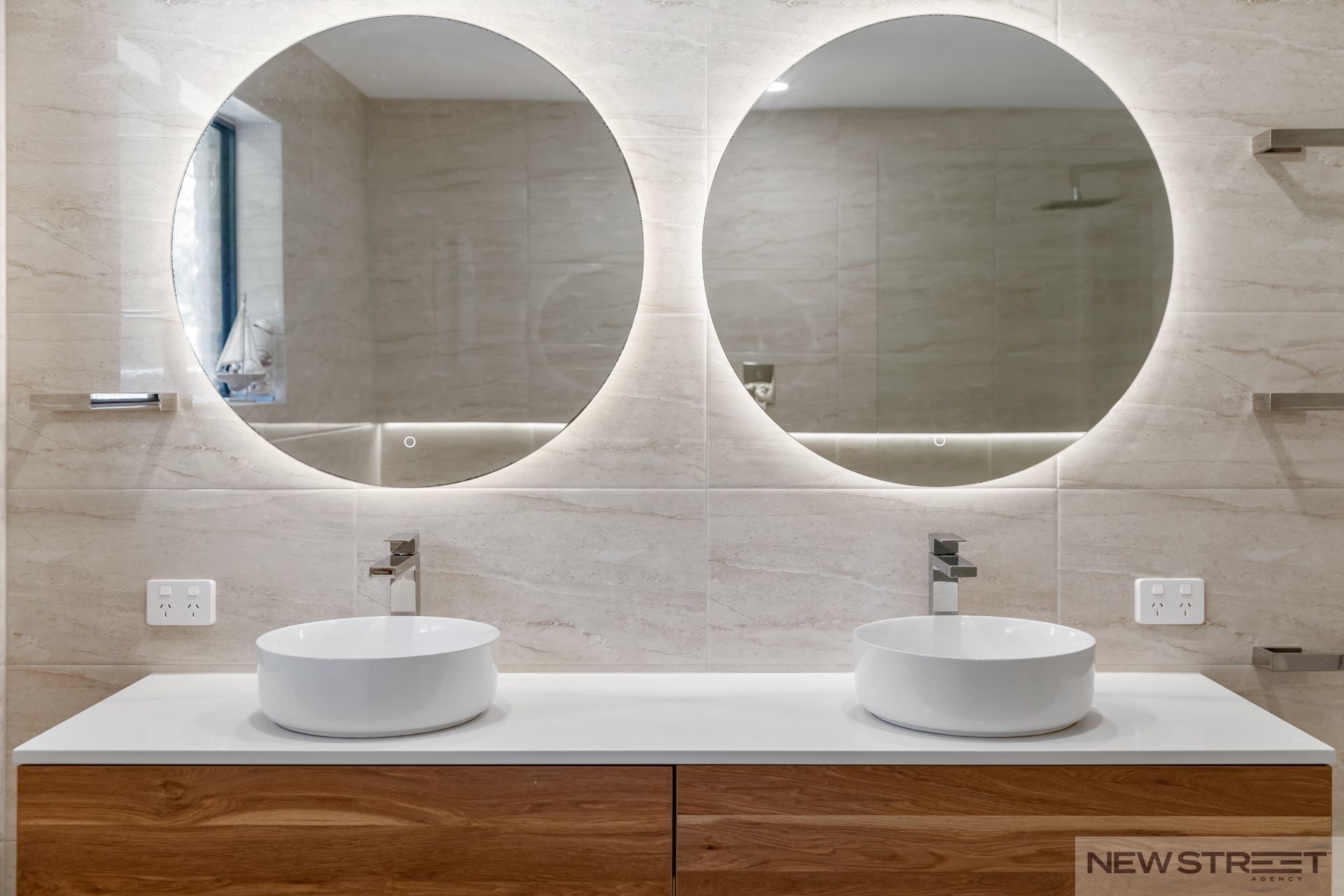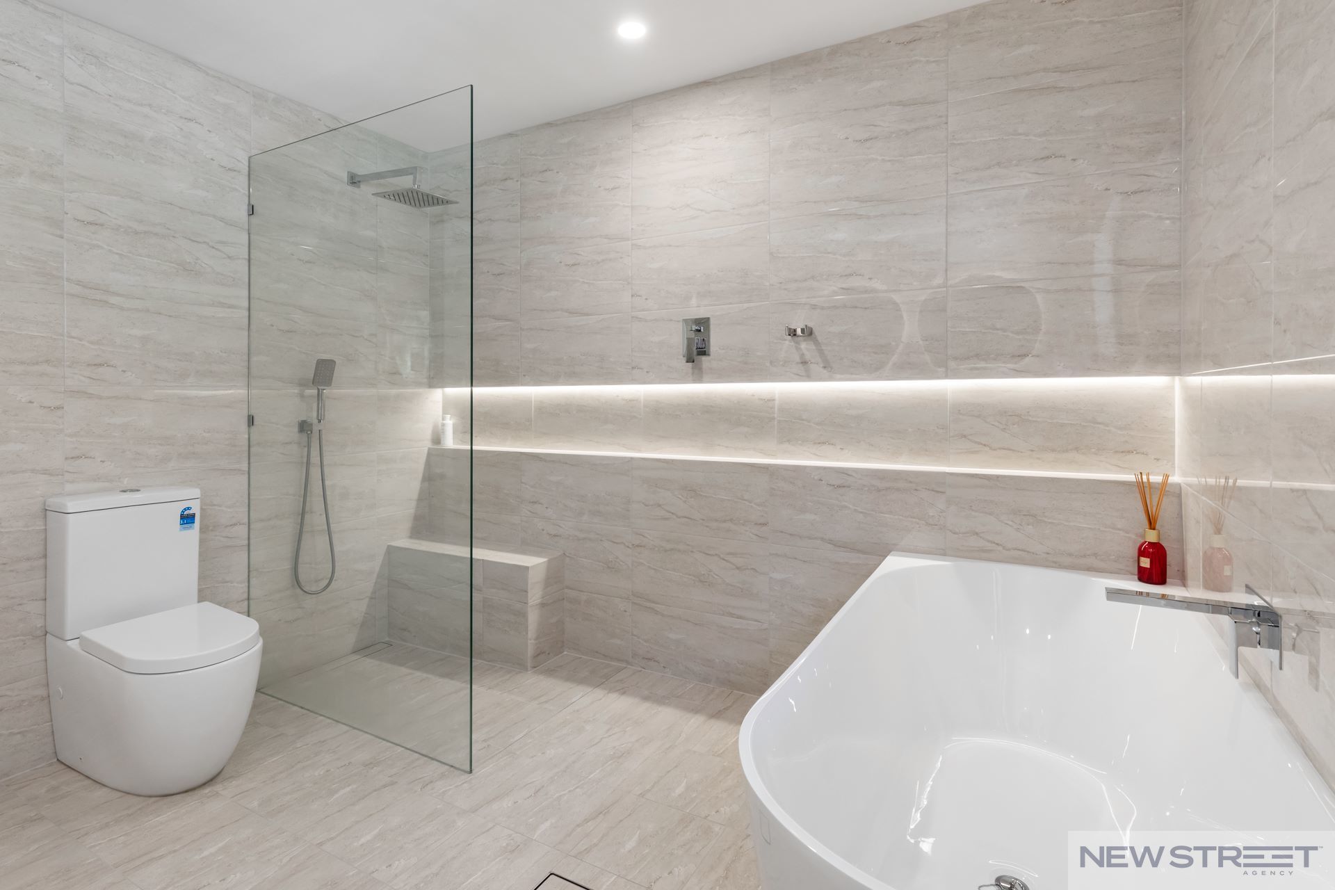 Bathrooms: • The main bathroom and ensuite have been completely renovated to the highest standards. • Main bathroom includes dual vanities, a walk-in shower with custom bench, and an extra-long tub. • Ensuite features dual vanities, a walk-in shower with custom bench, and elegant LED-lit niches. • Both bathrooms boast dual back-lit mirrors and water-efficient toilets.